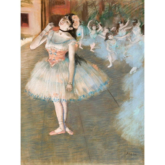 Dancer Onstage White Modern Wood Framed Art Print by Degas, Edgar