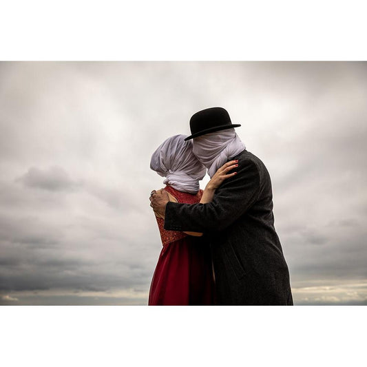 The Lovers Then And Now White Modern Wood Framed Art Print by Ze, Genadijs