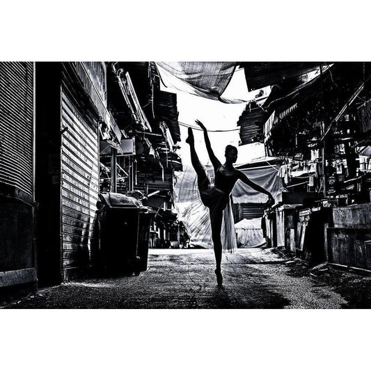 Ballerina March White Modern Wood Framed Art Print by Valevicius, Aurimas