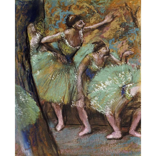 Green Dancers White Modern Wood Framed Art Print by Degas, Edgar
