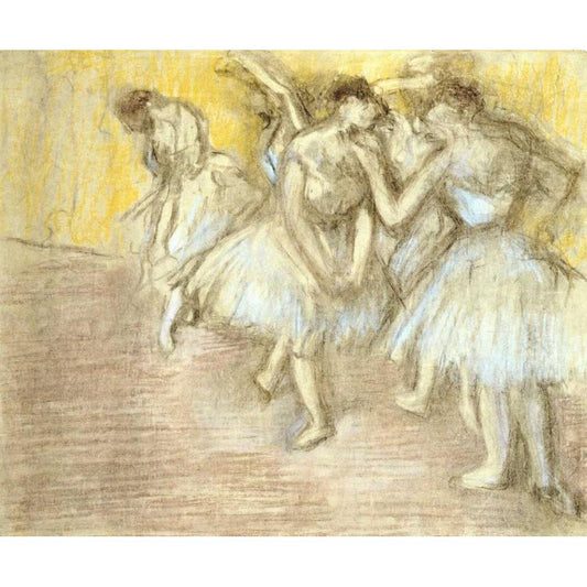 Dancer Adjusting Her Shoe White Modern Wood Framed Art Print by Degas, Edgar