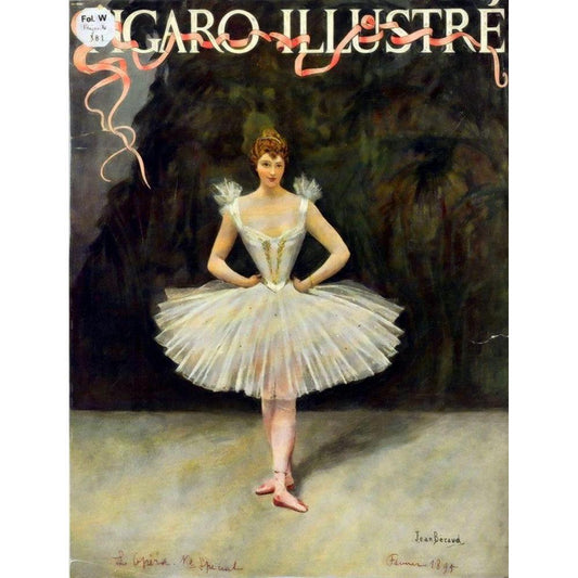 Figaro Illustre Ballerina White Modern Wood Framed Art Print by Vintage Apple Collection