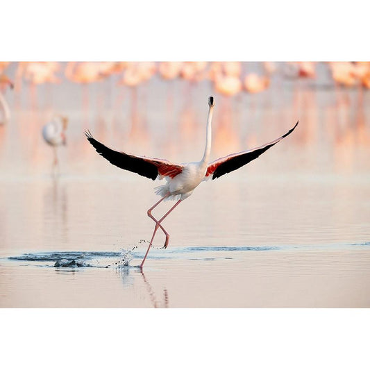 Flamingo Dancing Gold Ornate Wood Framed Art Print with Double Matting by Gil Raga, Joan
