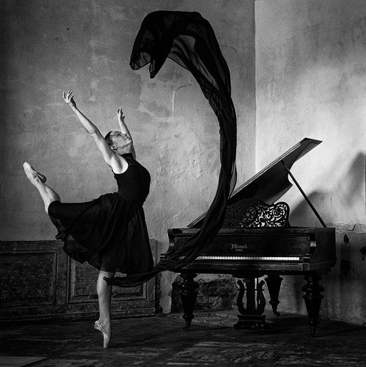 Dancer In Black White Modern Wood Framed Art Print with Double Matting by Kapsha, Eduards