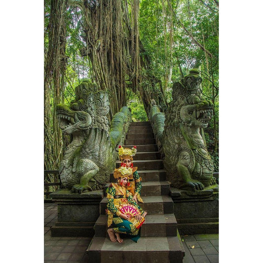 Indonesia-Bali-Ubud Balinese dancers at Hindu temple (MR) Gold Ornate Wood Framed Art Print with Double Matting by Jaynes Gallery