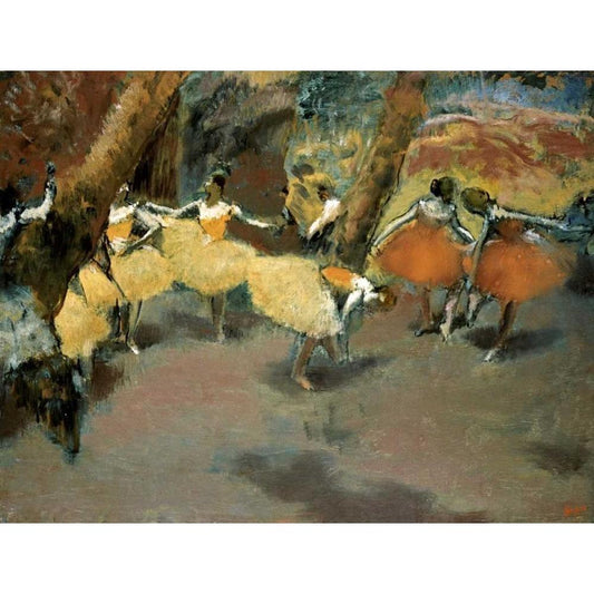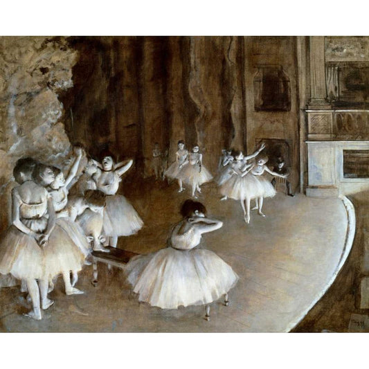 Ballet Rehearsal on the Set, 1874 Gold Ornate Wood Framed Art Print with Double Matting by Degas, Edgar