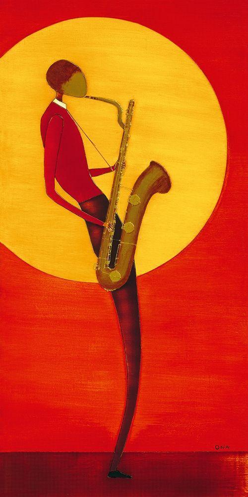 Jazz Man I White Modern Wood Framed Art Print with Double Matting by Ona