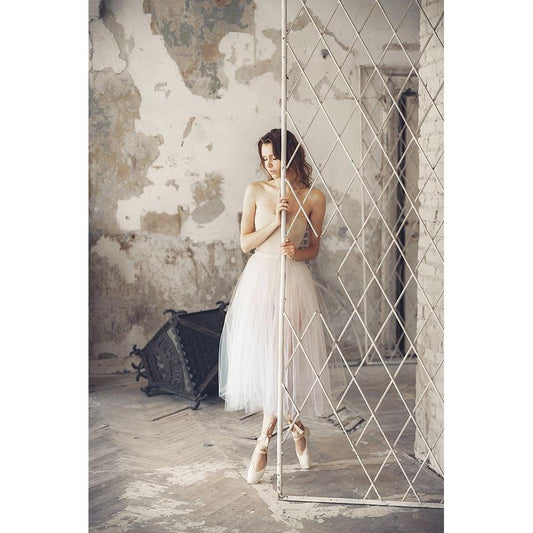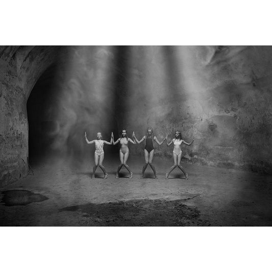 Ballerina Lying On The Stairs 2 Bw Black Modern Wood Framed Art Print by Nanev, Vasil
