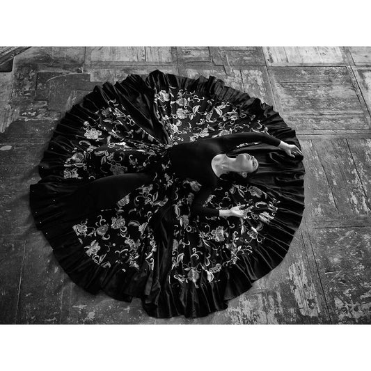 Ballerina Lying On The Stairs Bw Black Modern Wood Framed Art Print by Nanev, Vasil