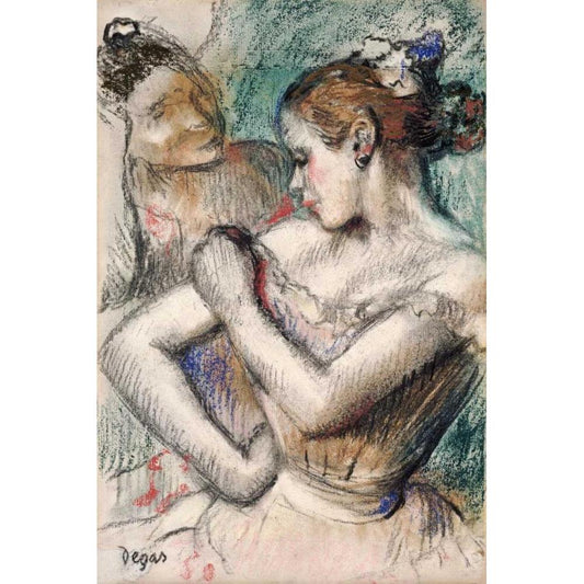 Two Dancers In Green Skirts Black Modern Wood Framed Art Print by Degas, Edgar