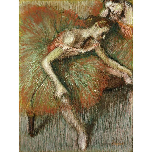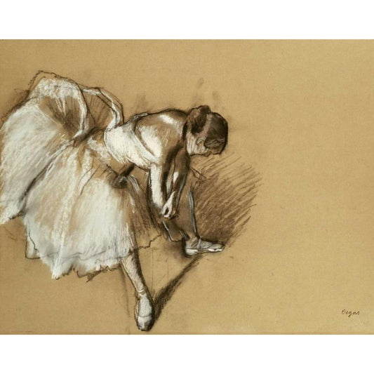 Dancer Adjusting Her Shoe Black Modern Wood Framed Art Print by Degas, Edgar