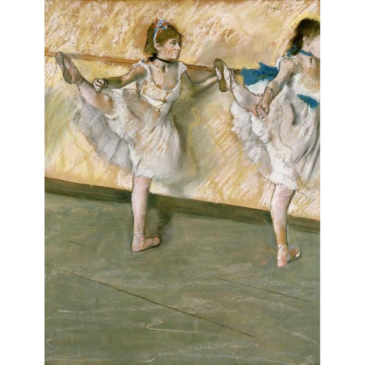 Dancers Bending Down Black Modern Wood Framed Art Print by Degas, Edgar