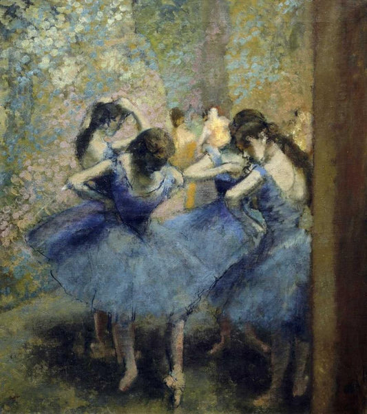 Blue Dancers - Les Danseuses Bleues White Modern Wood Framed Art Print with Double Matting by Degas, Edgar