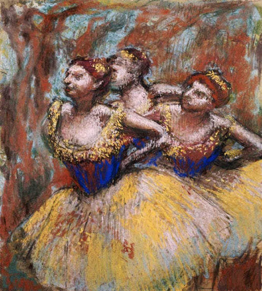 Three Dancers White Modern Wood Framed Art Print with Double Matting by Degas, Edgar