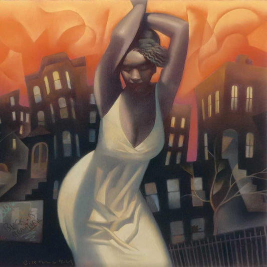 Harlem Nocturne White Modern Wood Framed Art Print with Double Matting by Kelley, Gary