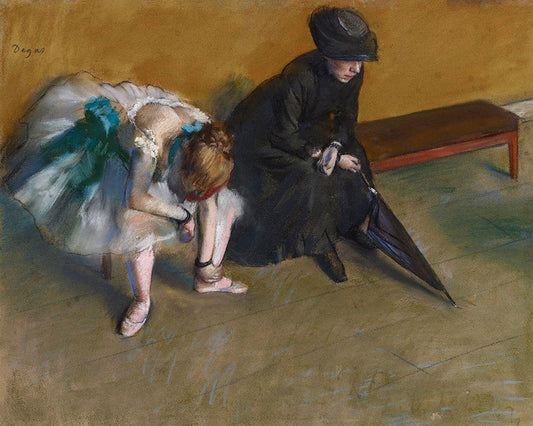 Ballerine dietro le quinte White Modern Wood Framed Art Print with Double Matting by Degas, Edgar