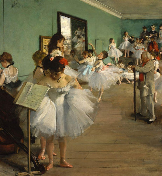 The Dancing Class White Modern Wood Framed Art Print with Double Matting by Degas, Edgar