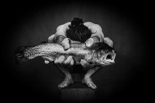 Jumper Man Black Ornate Wood Framed Art Print with Double Matting by Aditya, Rawisyah
