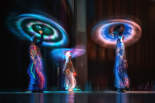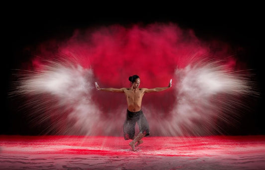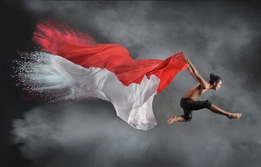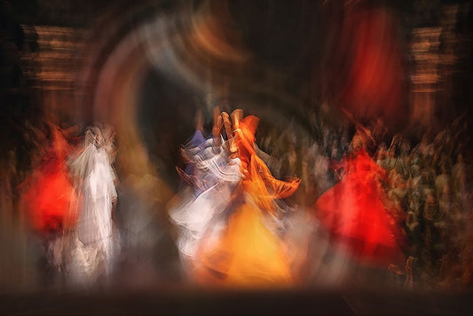Dance Of Red And White Cloths Black Ornate Wood Framed Art Print with Double Matting by Aditya, Rawisyah