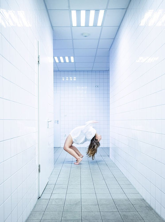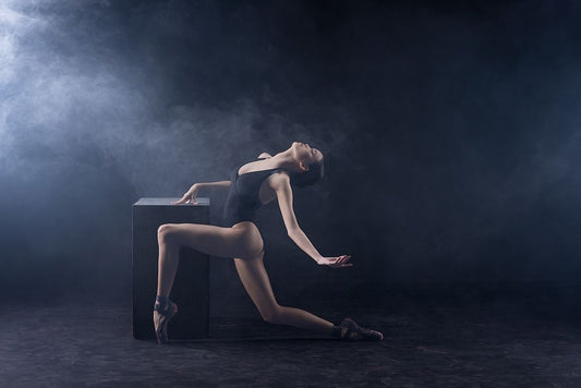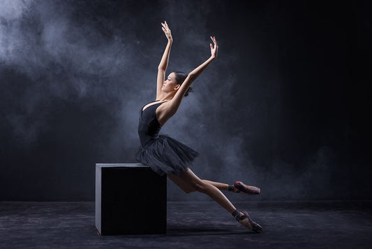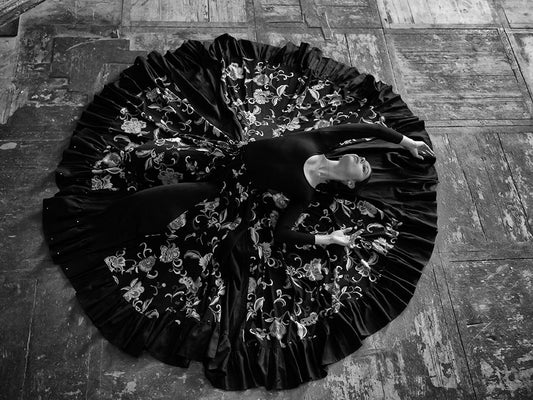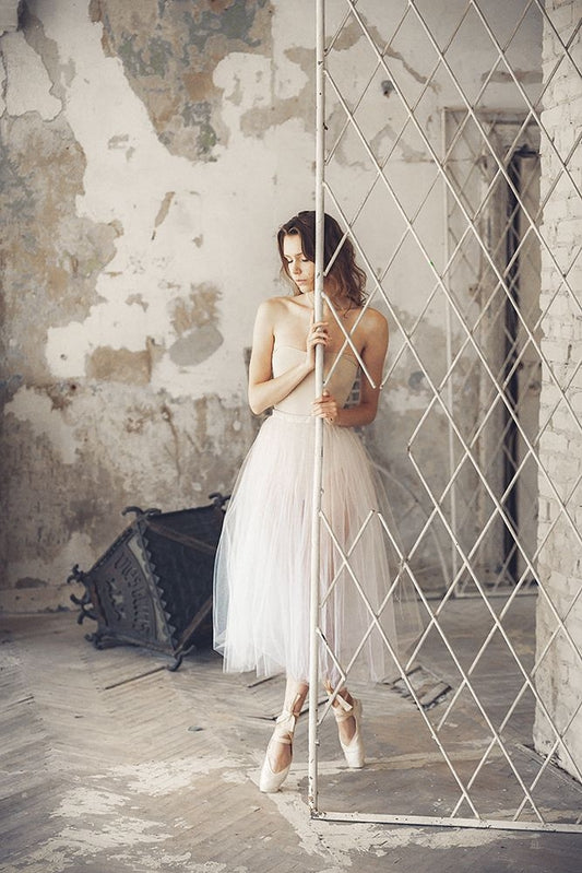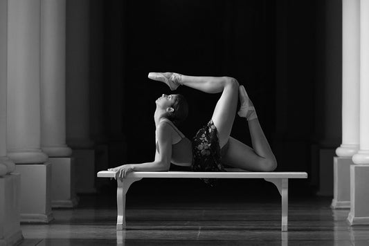 Ballerina Lying On The Stairs Bw Black Ornate Wood Framed Art Print with Double Matting by Nanev, Vasil