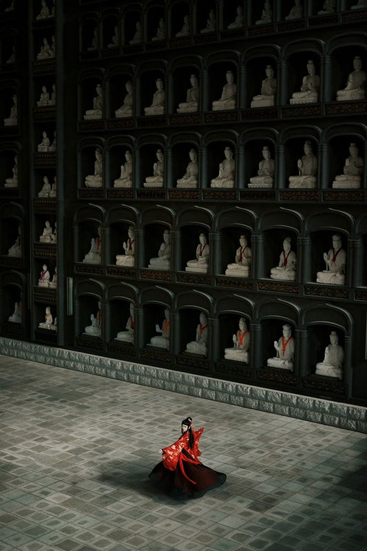 Dance under the moon Black Ornate Wood Framed Art Print with Double Matting by Pu, Can