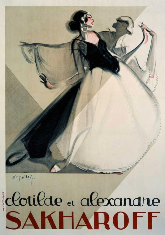 Clotilde et Alexandre Sakharoff Black Ornate Wood Framed Art Print with Double Matting by Petit, Philippe