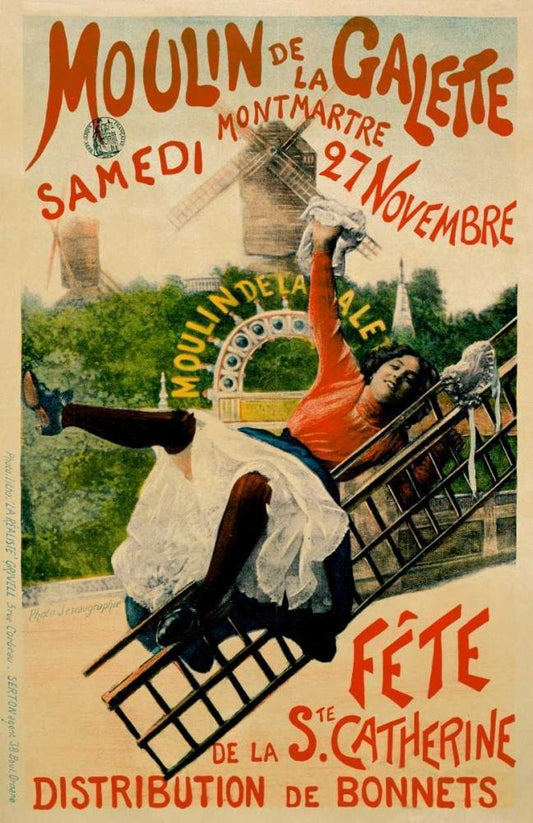 Moulin de la Galette Black Ornate Wood Framed Art Print with Double Matting by Sescau, Paul