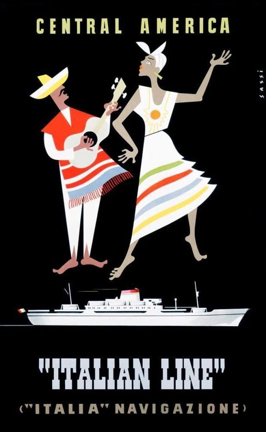 “Italian Line†/ Central America Black Ornate Wood Framed Art Print with Double Matting by Sassi, Alda