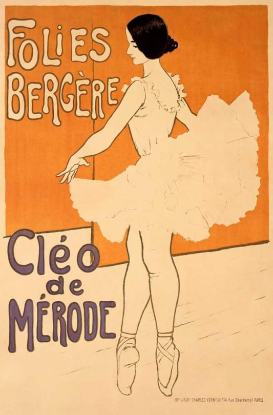 Folies-Bergere/Cleo De Merode Black Ornate Wood Framed Art Print with Double Matting by Unknown