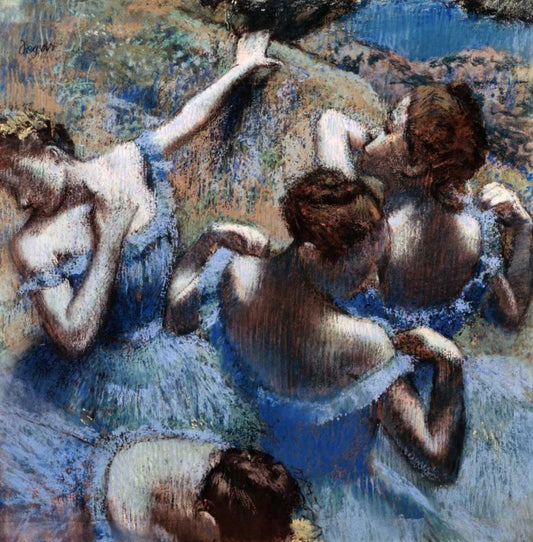 Blue Dancers - Les Danseuses Bleues Black Ornate Wood Framed Art Print with Double Matting by Degas, Edgar