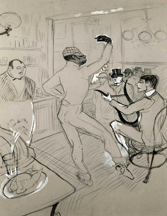 Dance at the Moulin Rouge - Detail Black Ornate Wood Framed Art Print with Double Matting by Toulouse-Lautrec, Henri