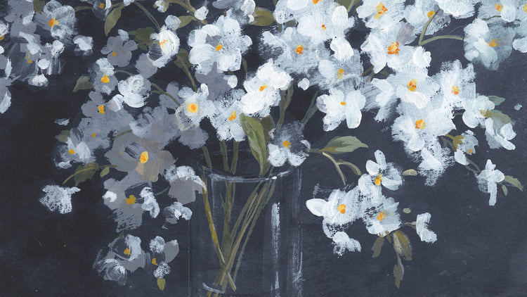 Bright Florals White Modern Wood Framed Art Print with Double Matting by Nai, Danhui