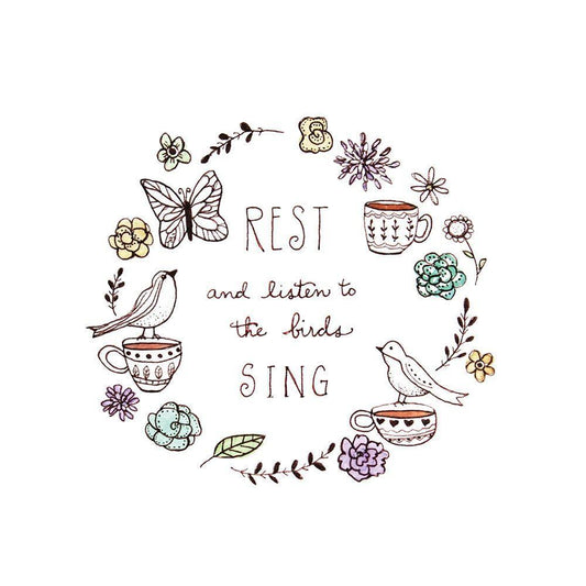And Listen to the Birds Sing White Modern Wood Framed Art Print with Double Matting by Tyndall, Elizabeth