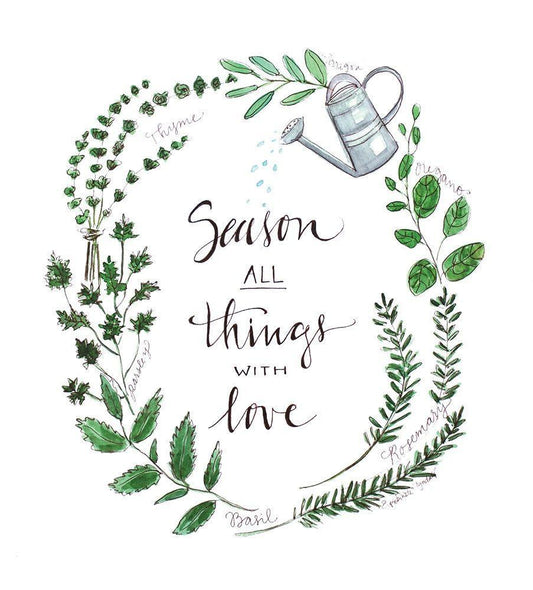 Season All Things with Love White Modern Wood Framed Art Print with Double Matting by Tyndall, Elizabeth