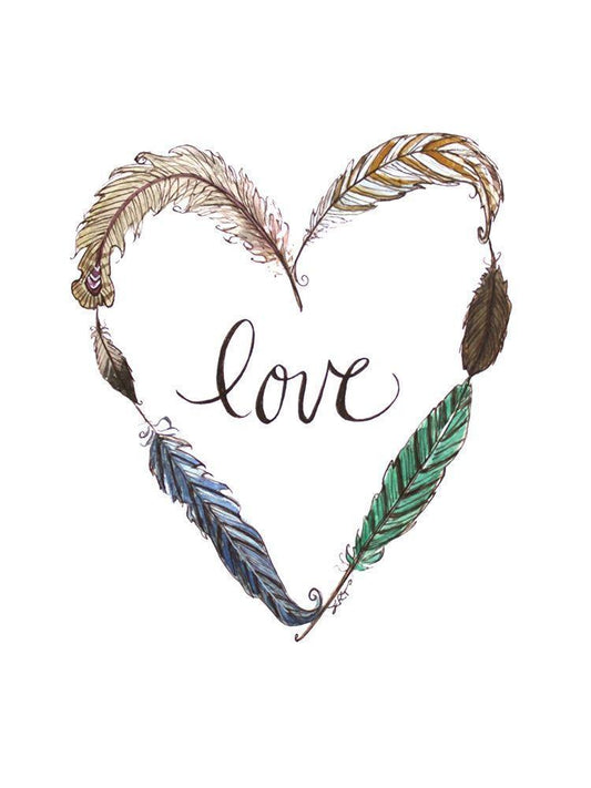Love Feathers White Modern Wood Framed Art Print with Double Matting by Tyndall, Elizabeth