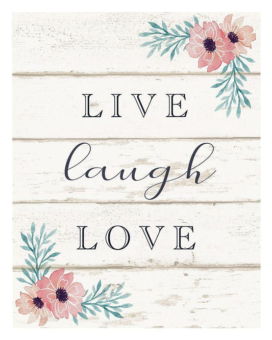 Live, Laugh, Love White Modern Wood Framed Art Print with Double Matting by Tyndall, Elizabeth