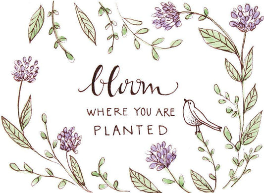 Bloom Where Youre Planted White Modern Wood Framed Art Print with Double Matting by Tyndall, Elizabeth
