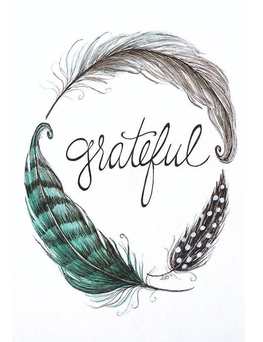 Grateful Sign White Modern Wood Framed Art Print with Double Matting by Tyndall, Elizabeth