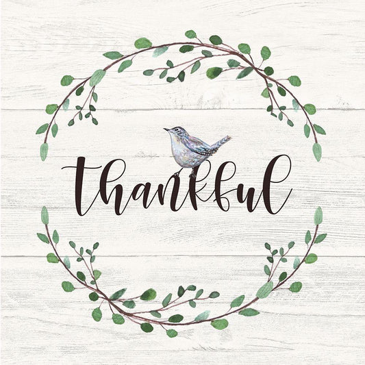 Thankful Sign White Modern Wood Framed Art Print with Double Matting by Tyndall, Elizabeth