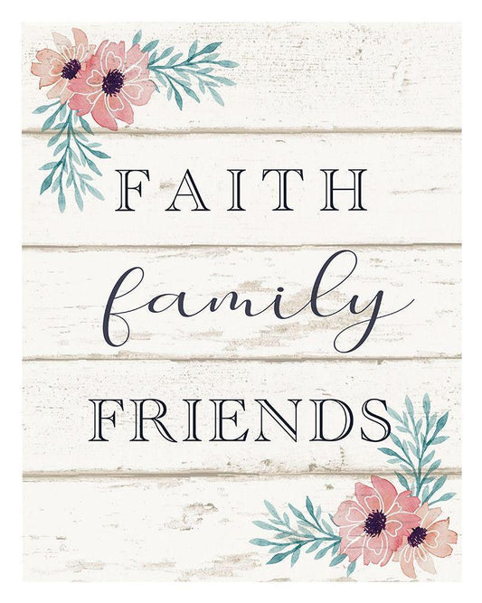 Faith, Family, Friends White Modern Wood Framed Art Print with Double Matting by Tyndall, Elizabeth