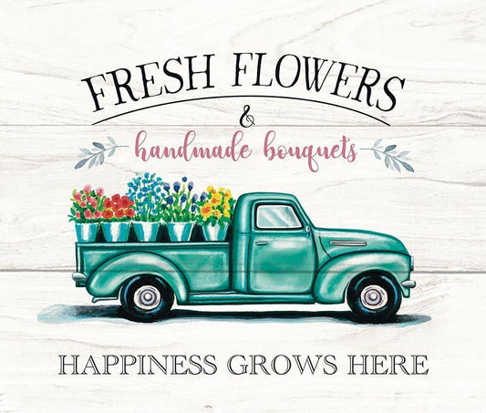 Fresh Flowers and Truck White Modern Wood Framed Art Print with Double Matting by Tyndall, Elizabeth