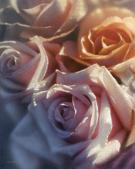 Roses - Pink Pair White Modern Wood Framed Art Print with Double Matting by Bogle, Collin