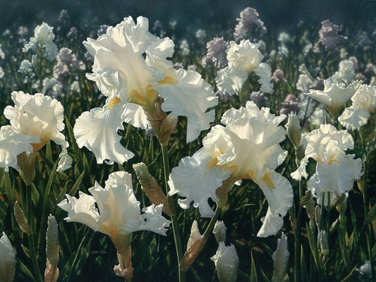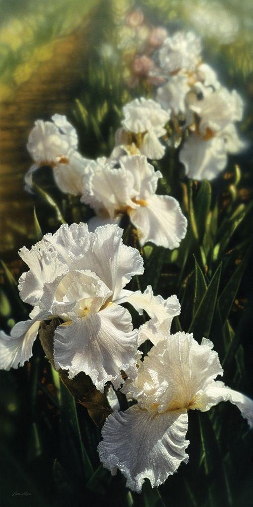 White Iris Garden - Square White Modern Wood Framed Art Print with Double Matting by Bogle, Collin