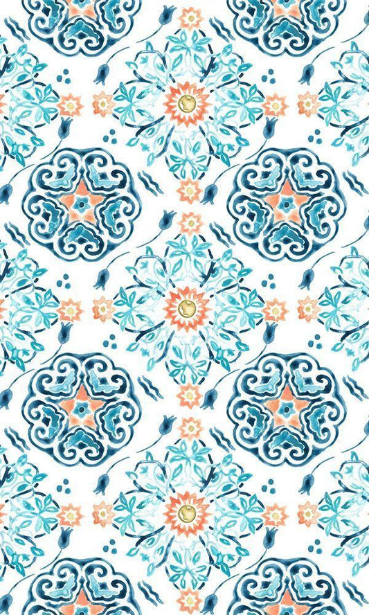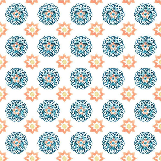 Medallion Medley Collection A White Modern Wood Framed Art Print with Double Matting by Vess, June Erica