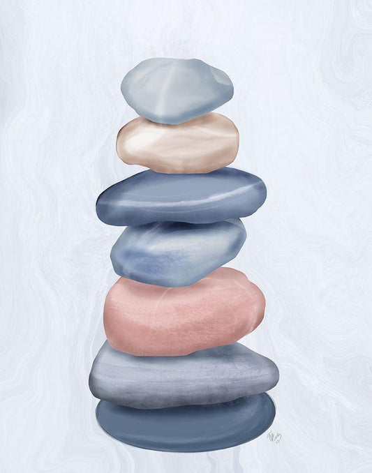 Stacking Stones 1 White Modern Wood Framed Art Print with Double Matting by Fab Funky