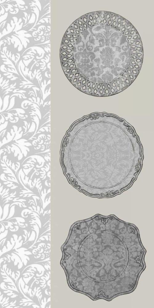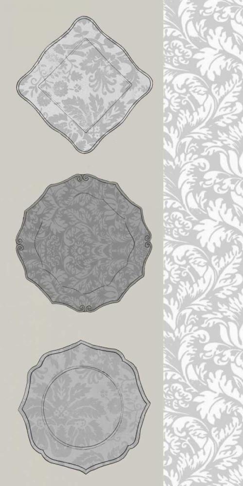 Linear Tableware II White Modern Wood Framed Art Print with Double Matting by Vess, June Erica