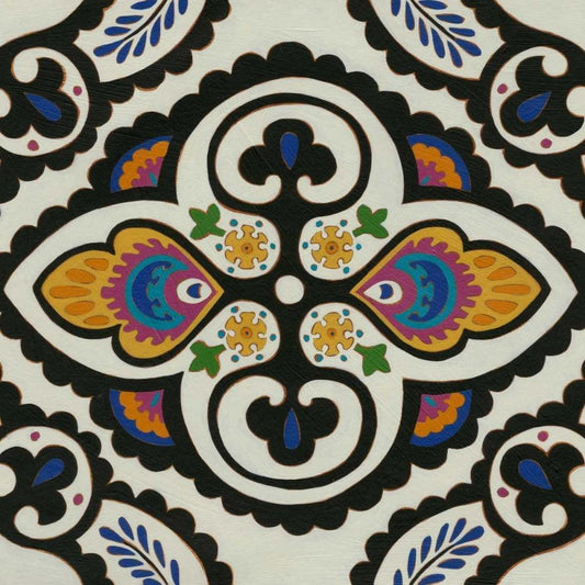 Celebration Suzani II White Modern Wood Framed Art Print with Double Matting by Zarris, Chariklia