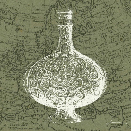 Map Bottles I White Modern Wood Framed Art Print with Double Matting by Burghardt, James