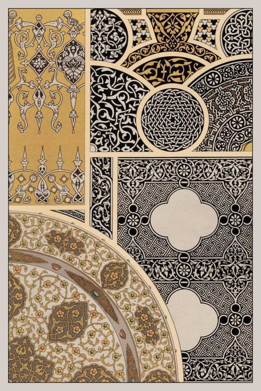 Ornament in Gold and Silver I White Modern Wood Framed Art Print with Double Matting by Vision Studio