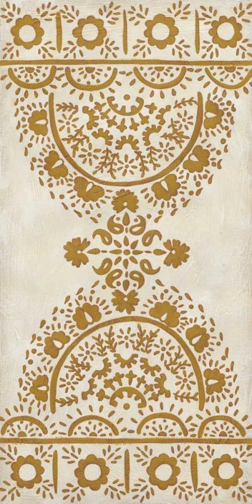Ochre Embroidery I White Modern Wood Framed Art Print with Double Matting by Zarris, Chariklia